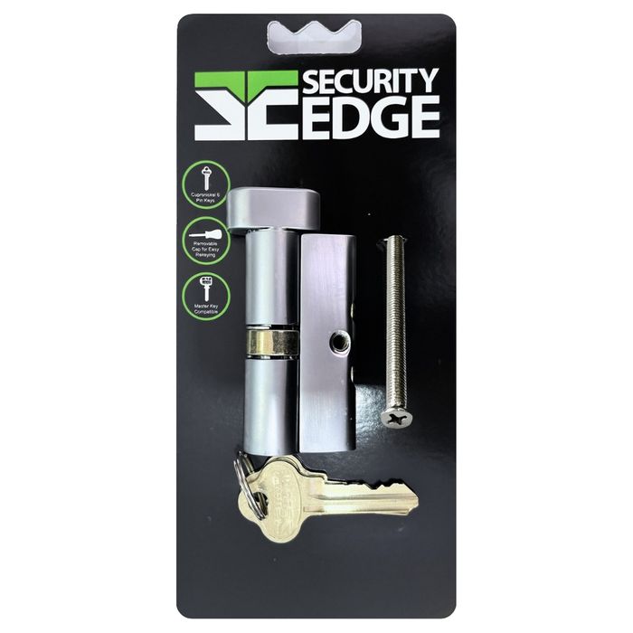 Security Edge L Series Fixed Cam 5 Pin Euro Cylinder Satin Chrome CYL/TURN (Display Pack) To suit Euro Style Mortise Locks Standard 62mm Length Zinc Alloy Body Removable 2 Screw Cap for easy rekeying Supplied KD with 2 x Cupronickel KD C4 5 Pin Keys